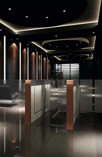 Los reconocidos pasillos de sensores HSB están adaptados a la estética de cada entorno gracias a su gran variedad de materiales y acabados disponibles. Para ajustarse al estilo de la zona de entrada, se puede optar por un cuerpo en acero inoxidable o paredes laterales transparentes de cristal.